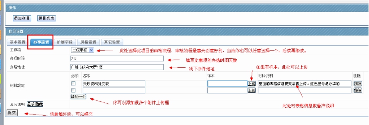 C、辦事設(shè)置:“基本設(shè)置”創(chuàng)建欄目的時(shí)候已經(jīng)填寫了,現(xiàn)在無(wú)需填寫,當(dāng)然你可以修改;辦事設(shè)置里面,首先選擇工作流,這個(gè)些工作流是事先設(shè)定好的;工作流的概念就是這個(gè)辦事事先規(guī)定了他有幾個(gè)審核步驟,由誰(shuí)審核等相關(guān)設(shè)置設(shè)置;如果事先沒有創(chuàng)建相應(yīng)工作流可以任意選擇一個(gè),后續(xù)再調(diào)整即可;一般情況下,一個(gè)部門的所有辦事都可以用同一個(gè)工作流,一般都是同一個(gè)部門領(lǐng)導(dǎo)審核,如果有特別審核流程,可自己再創(chuàng)建。