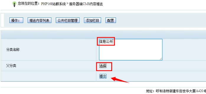 如:添加一個信息公開 欄目,如果是大列表,下面的選擇 按鈕就留空,如果是某個欄目下面的子分類,就選擇屬于某個欄目。