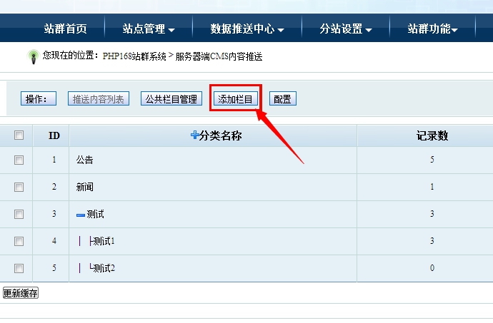 所以此處添加的欄目,到時需要和主站的欄目一個一個對接,對接的欄目,后續的數據就自動會推動到對應地方。