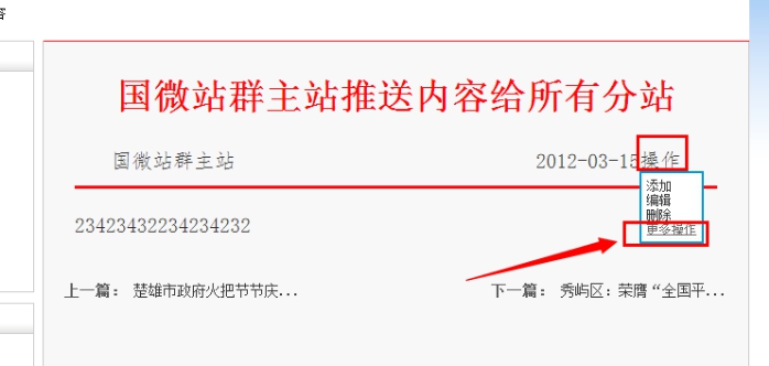 A、打開任何一個分站,打開一篇內容,只要有權限和登錄網站 了,就可以看到操作按鈕,點擊:更多操作>>