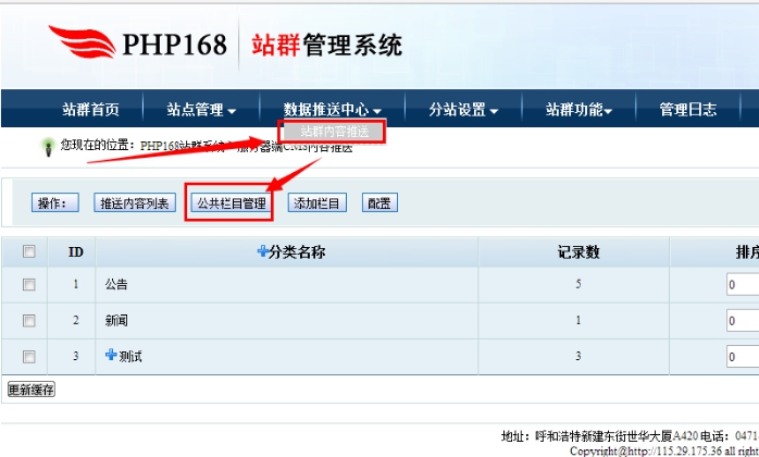 3、此處用來添加欄目,這些欄目是主站站群模塊的,不屬于任何CMS系統,他用來分類各分站推送過來的數據。最關鍵的用途是用來對接欄目。