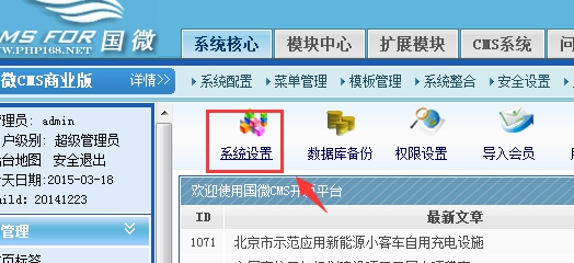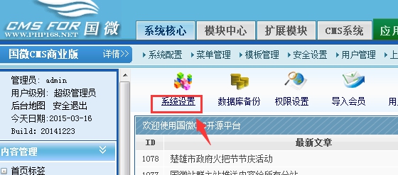 點擊后臺系統設置