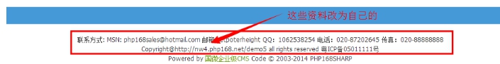 2、網站基本信息修改(改為你自己想要的):修改下網站名稱和描述;備案信息;底部聯系方式。