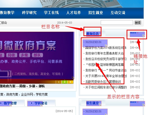 A、標簽欄目選擇:首頁將“通知公告” 里面的顯示欄目選擇 改為“學院新聞" 和"學術講座"