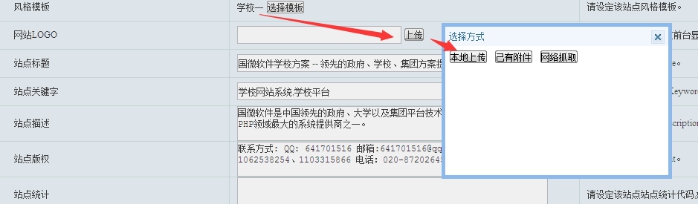 C、上傳頭部橫幅:每個模板頭部都有橫幅,可以點擊此處上傳;上傳---本地上傳