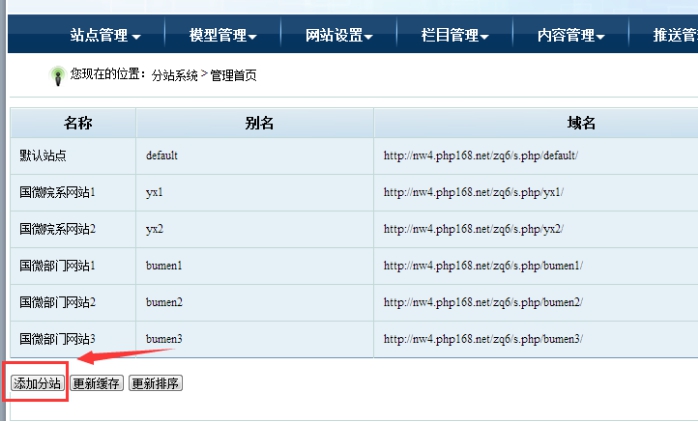 進入網站后臺--- 點擊”分站系統“即可進入管理界面