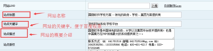 站點關鍵字:如果多個關鍵字用英文半角狀態間隔,便于百度搜索,類似 國微CMS系統,國微站群系統