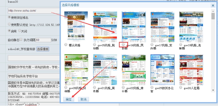點擊此處可以選擇分站模板,新選擇的分站模板,需要重新添加標簽