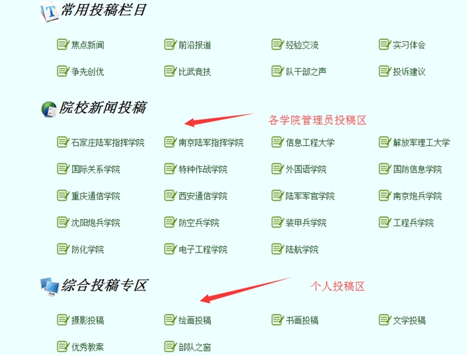 A:院校新聞:一般是各個學院信息管理員發布本學院內容