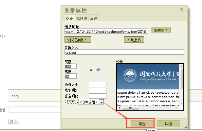 E:附件上傳成功后,點擊“確定” 按鈕