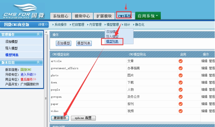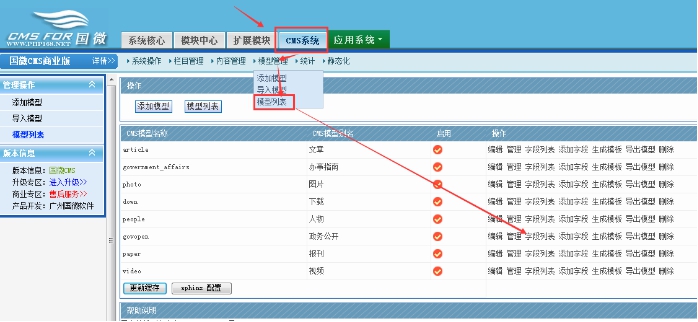 1、進(jìn)入網(wǎng)站后臺----點擊cms系統(tǒng)---模型列表---政務(wù)公開---字段列表