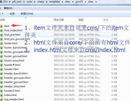 A、建立文件夾template/site/gov25/sites,復制template/gov25/core/目錄下所有HTML文件到template/site/gov25/sites目錄下。