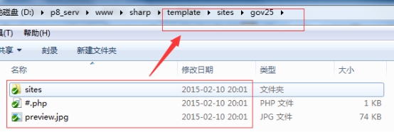 B、復制template/gov25/下的文件夾cms到template/site/gov25/sites/到目錄下。
