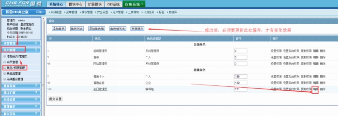 最后,需要更新 角色緩存,或全站緩存,就產生效果了。