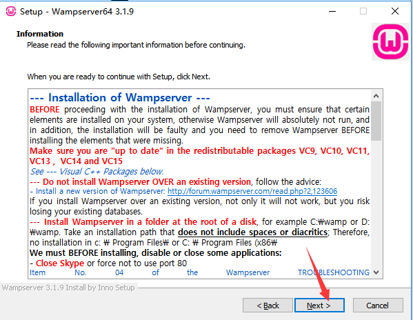 (備注:一般需要安裝兩遍,第一遍安裝的時候,會提示安裝一些電腦插件;這個過程安裝的,可能有些環(huán)境無法啟動。一般直接重新安裝wamp,第二次重新安裝前,先刪除第一次安裝生成的wamp64目錄文件夾。)