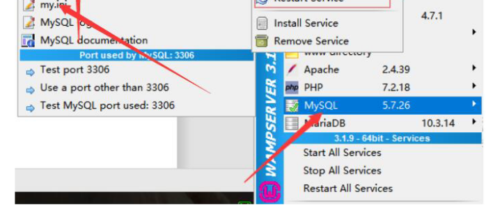 A:鼠標左鍵點擊底部運行圖標-----選擇mysql----my.ini
