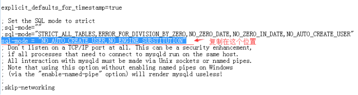 B:將下面這行代碼放到my.ini如下這個位置,保存并重啟環(huán)境