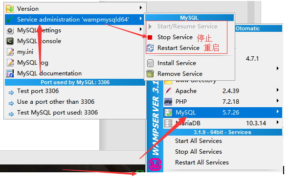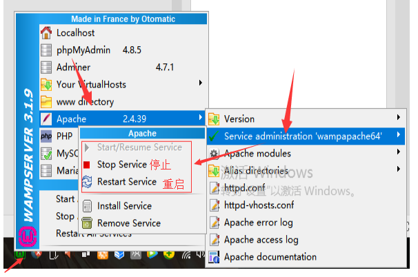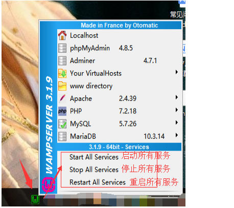 三、查看wamp運行狀態(tài)和重啟方法