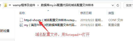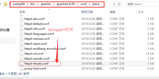 或者另外一種方式: 打開域名配置文件httpd-vhosts.conf的方式是此目錄下(用notepad++打開):
