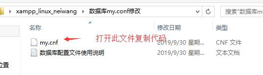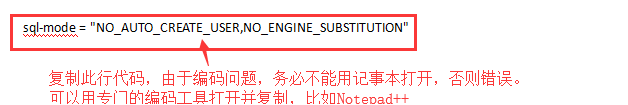 2)在目標項目中的my.conf數據庫配置文件中,將剛剛上面那行代碼復制到下面此處(當然可以其他地方),然后保存,重啟環境即可。