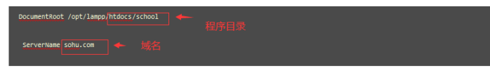 B: 此文件中xampp為我們創建了兩個示例, 然后修改為我們自己需要的域名和程序目錄即可: