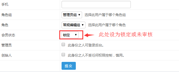 B:如果不允許此賬號(hào)登陸,就選擇“待審核”; 所以碰到自己的賬號(hào)登陸后空白,就考慮是不是賬號(hào)被設(shè)置為了待審核了。