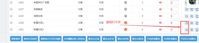 一、創建的欄目預覽打不開(主要是靜態預覽打不開)