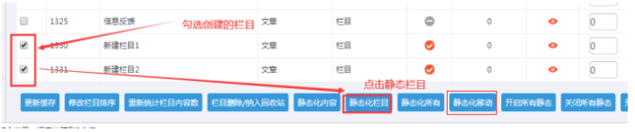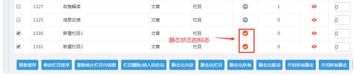 A:勾選對應的欄目------點擊”靜態欄目” 和“靜態化移動”