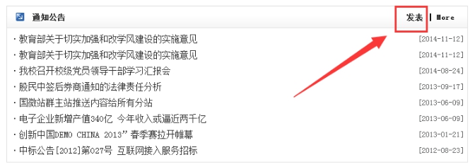 系統(tǒng)可快速找到發(fā)布入口,只要擁有該欄目的發(fā)布權(quán)限,就可以看到”發(fā)表”二字,反之,
