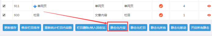 發布內容后,發現內容在欄目上沒有更新,這個時候可以點擊靜態欄目。