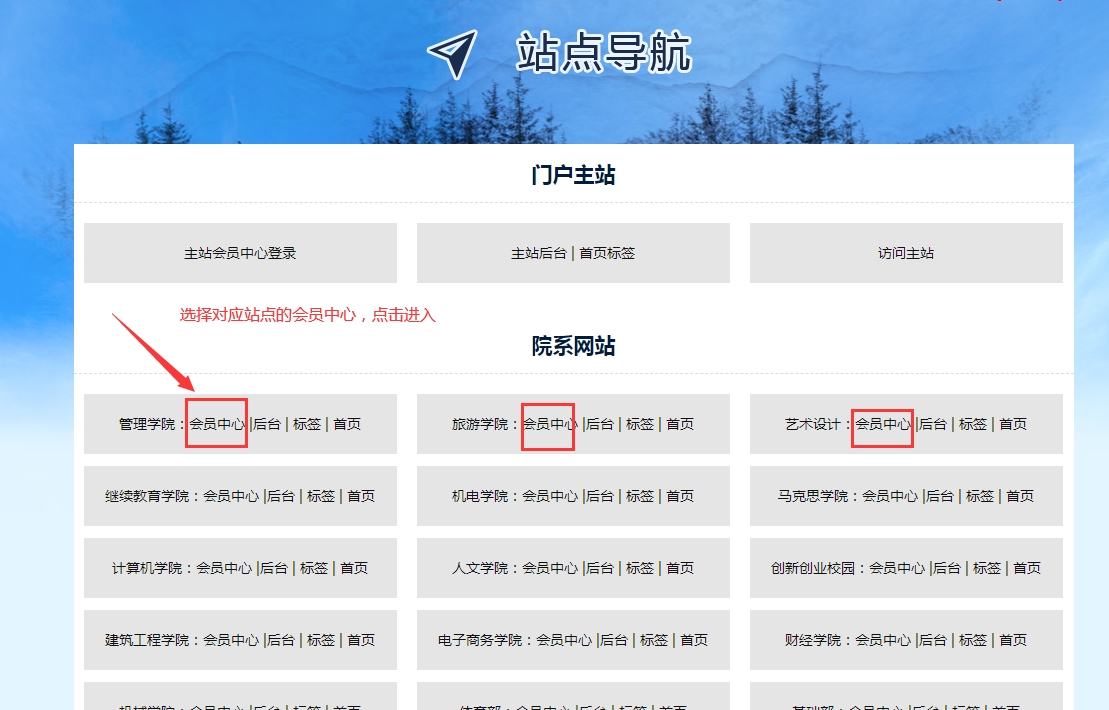 會(huì)員中心入口:找到自己的站點(diǎn),點(diǎn)擊進(jìn)入“會(huì)員中心”;點(diǎn)到其他站點(diǎn)的會(huì)員中心會(huì)提示沒權(quán)限。