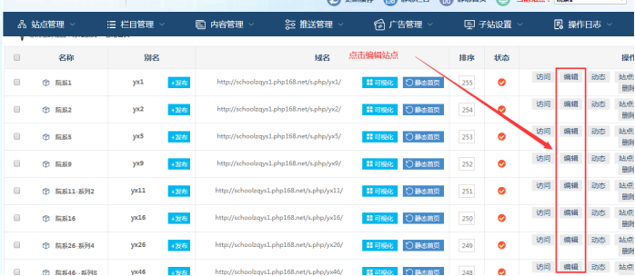 進入子站站群后臺-----選擇對應站點點擊編輯