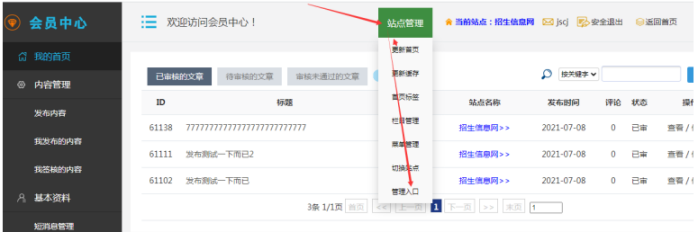 2、登錄會(huì)員中心后-----點(diǎn)擊站點(diǎn)管理-----點(diǎn)擊管理入口