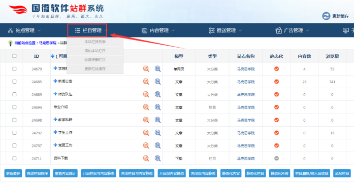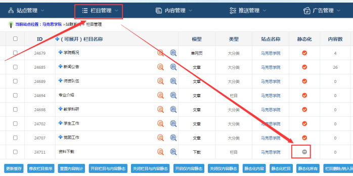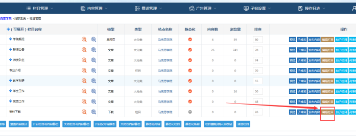 A:選定某個(gè)欄目----點(diǎn)擊編輯欄目