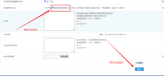 快捷設(shè)置整個(gè)欄目只設(shè)局域網(wǎng)內(nèi)訪問