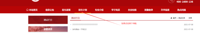 7、如果我們菜單導(dǎo)航上,也有這個(gè)對(duì)應(yīng)上面欄目;那么就需要在導(dǎo)航設(shè)置上填寫這個(gè)上面的動(dòng)態(tài)地址即可