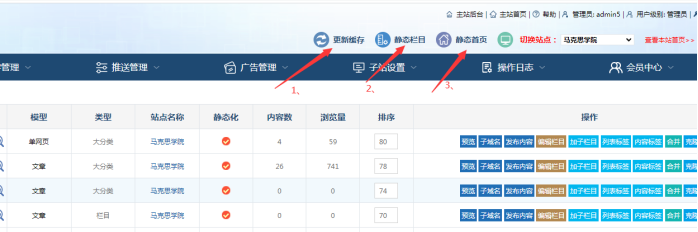 8、最后點(diǎn)擊更新緩存、靜態(tài)欄目、靜態(tài)首頁