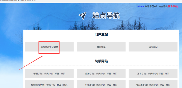 所有用戶登錄在此界面;各個站點管理員需收藏此頁面。點擊各自站點入口;