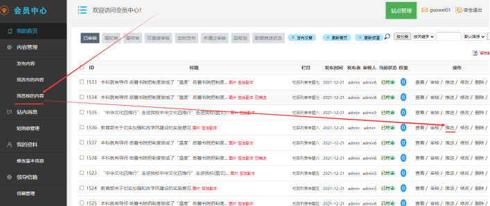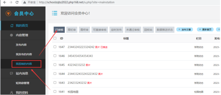 備注:推送給自己的其他欄目的數(shù)據(jù),不需要審核,他會自動顯示.