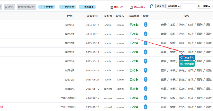 主站內(nèi)容可以推送給【下屬子站】和【自己網(wǎng)站其他欄目】