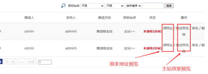 備注:推送過去的數(shù)據(jù),需要相關(guān)子站管理員審核后,才能顯示.