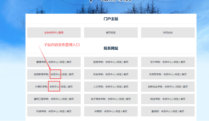內(nèi)容管理有多個入口,一般我們從【統(tǒng)一登錄入口】進(jìn)去,一般內(nèi)容管理都在【會員中心】