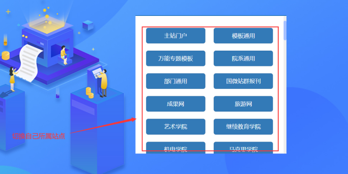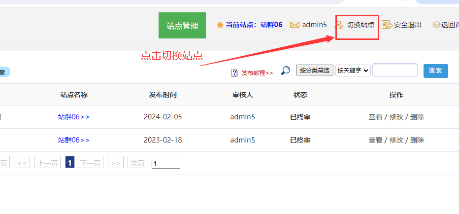 有時候我們一個賬號管理了幾個子站,如果需要切換到另外一個站點,進行對應欄目和內容管理。就需要用到此教程。