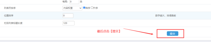 提交:最后點擊提交,表示創建好了一個新的文章類型的欄目。