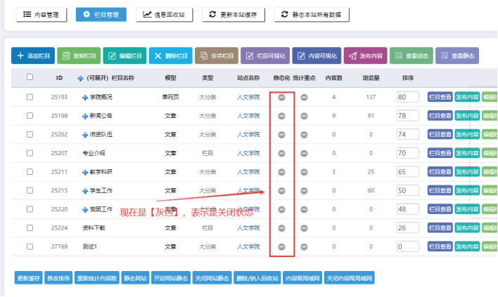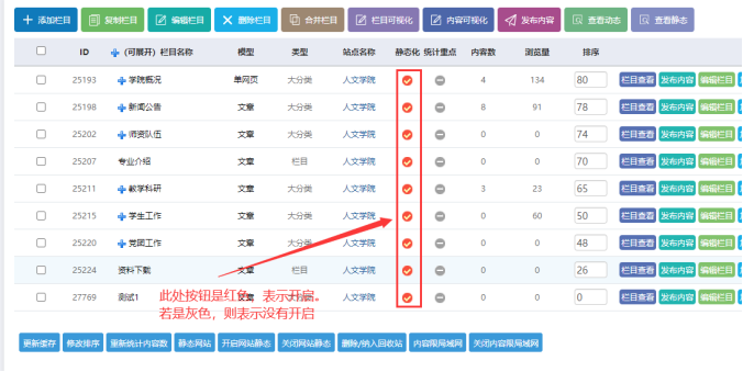 -------需要重新點擊【欄目管理】------可以查看到【紅色】圖標,表示靜態化開啟