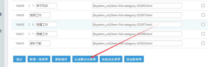 如果上面的是動態地址,那么我們就點擊【生成靜態化菜單】按鈕: