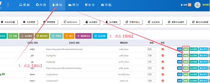 三、點擊【建站】------點擊【編輯】按鈕