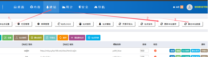 六、最后點擊【建站】------點擊【更新本站緩存】和【靜態本站數據】