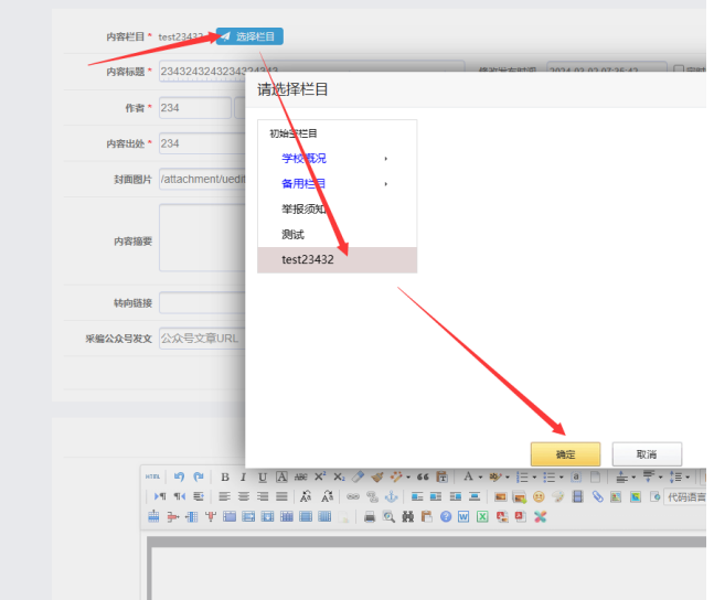 選擇對應的需要編輯的【單網頁模型】欄目,就會自動進入此篇內容的編輯狀態: