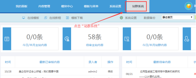 一、進(jìn)入系統(tǒng)站群后臺